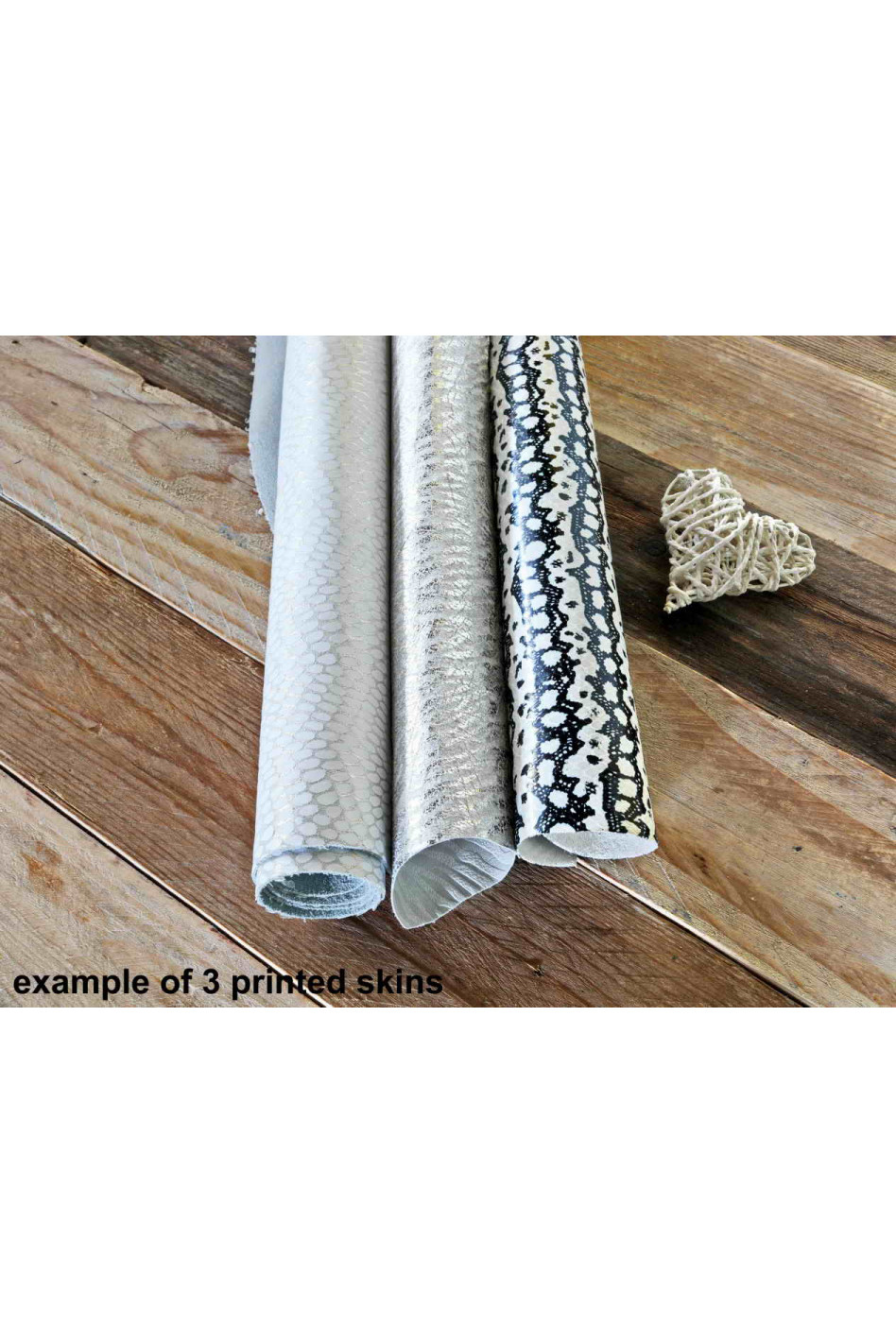 -2 pelli con stampa che potrebbero essere anche laminate, e 1 pelle tinta unita (liscia, con grana o senza, o scamosciata, o laminata).