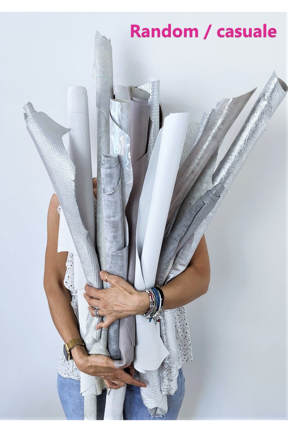 Mix di pelli intere, assortimento casuale, ricco di fantasie, stampe diverse e tinta unita argento e bianco che vi aiuteranno a rendere speciali le vostre creazioni!