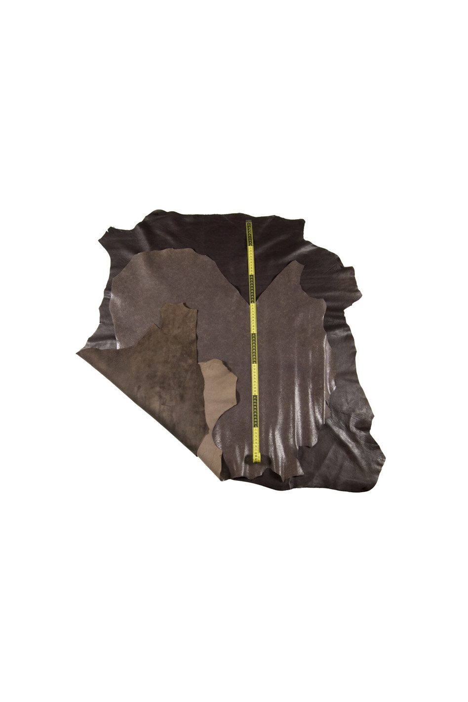 Pelli abbinate tono MARRONE, lotto di 1 capra laminata scamosciata e 1 vitello nappa, pellami qualità top per artigianato