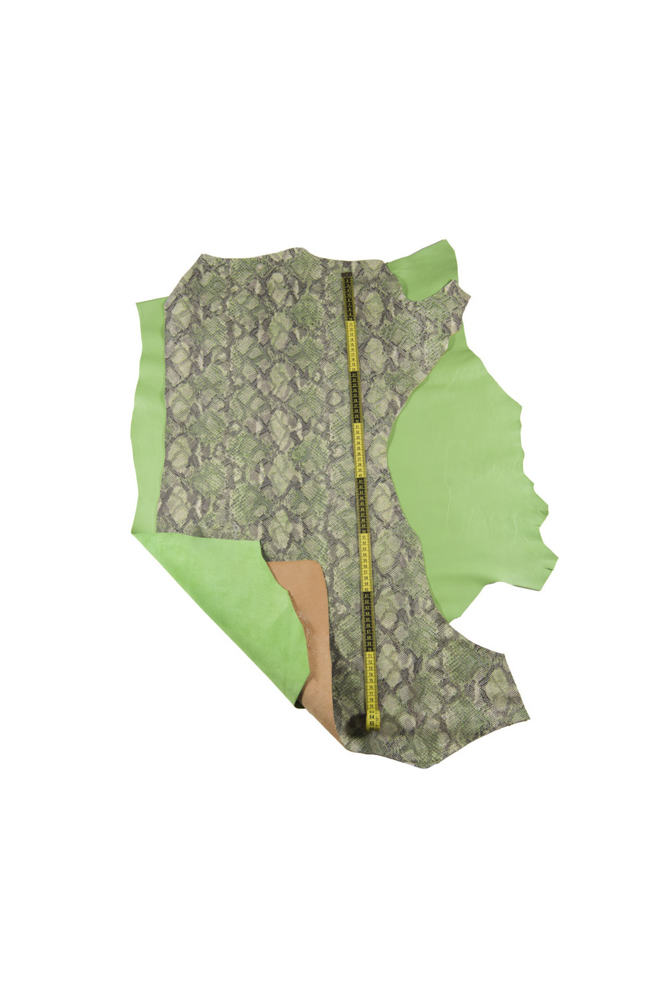 Particolare set di 2 pelli di lusso tono verde, 1 nappa liscia ed 1 pitone qualità top, perfette per l'artigianato.