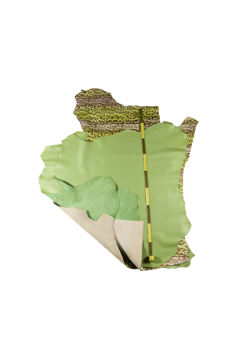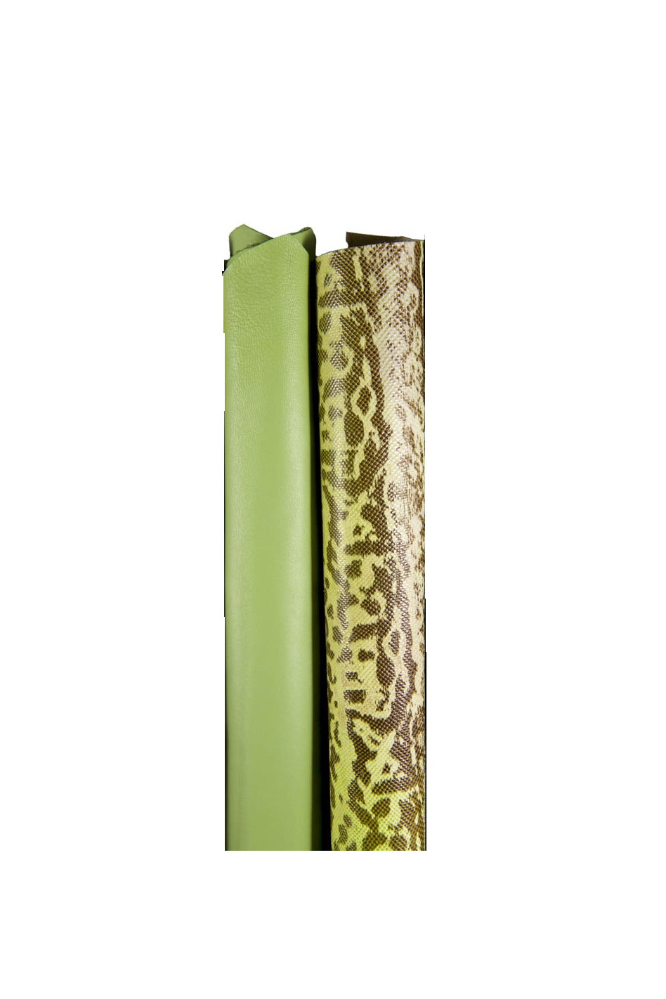 Bellissimo lotto di 2 pelli verde abbinate qualità top, nappa morbida e vitello stampato pitone per il fai da te.