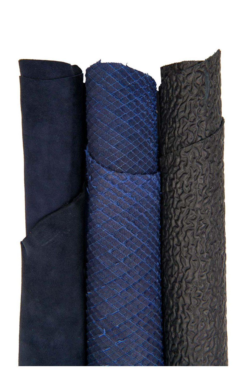 Assortimento 3 pelli blu, 1 pellame CAMOSCIO - 2 capre STAMPATE come da foto, per il fai da te