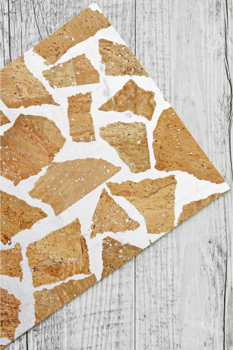 Fogli di SUGHERO naturale stampa giraffa e PELLE laminata stampata argento accoppiata nel retro.